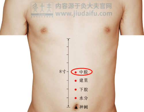 其实我们看它的位置就能知道它的作用,中脘穴的位置和胃很近,所以这个穴位主要可以防治一些脾胃疾病,比如腹胀、腹泻、腹痛、肠鸣、反酸、呕吐、便秘等,此外对食欲缺乏、目眩、耳鸣、青春痘、精力不济、神经衰弱等因脾胃不和引起的病症也很有效。