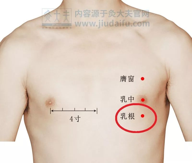 乳根穴:常灸可缓解减轻乳胀、乳痛。