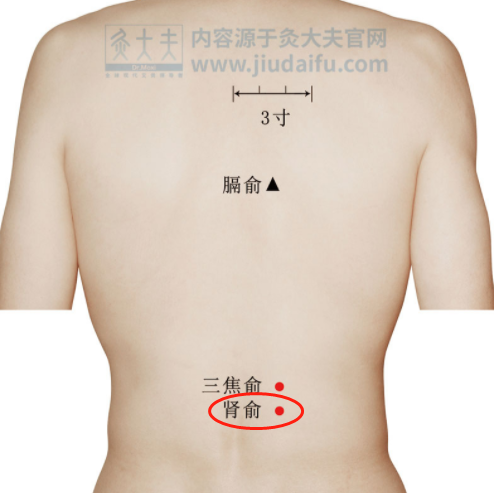 肾俞穴是肾脏气血输注于后背体表的部位,具有益肾助阳、纳气利水的作用。肾俞常用以改善肾脏与生殖系统疾病,如男性遗精、早泄,女性月经失调、痛经、白带异常、子宫脱垂等。