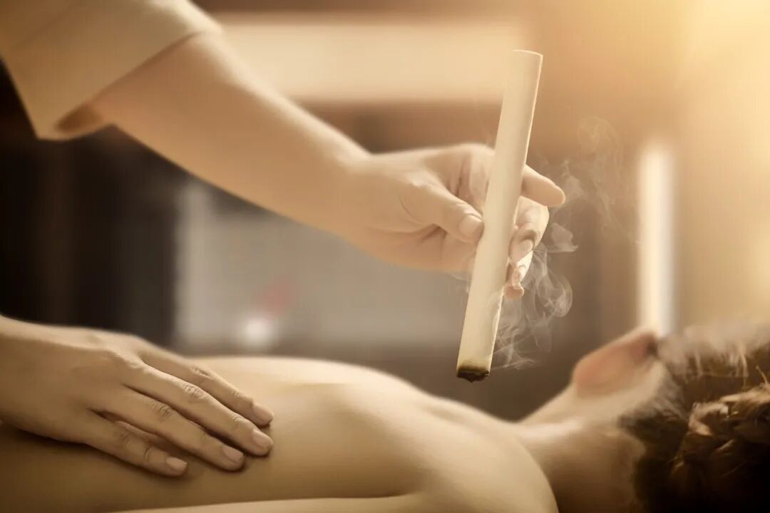 采用卧位,取少许精艾绒,将艾团搓成圆锥形艾炷、麦粒大小,在柱底部蘸取少许跌打万花油,放置于膏肓穴上点燃。当局部感到微微灼痛时立即将艾炷移开再施以第二壮,连灸7-9壮,灸后在施灸局部涂抹适量跌打万花油,以防烫伤。每日灸1次或隔日灸1次。不过,临床上一般以十多壮为宜。03温灸法
