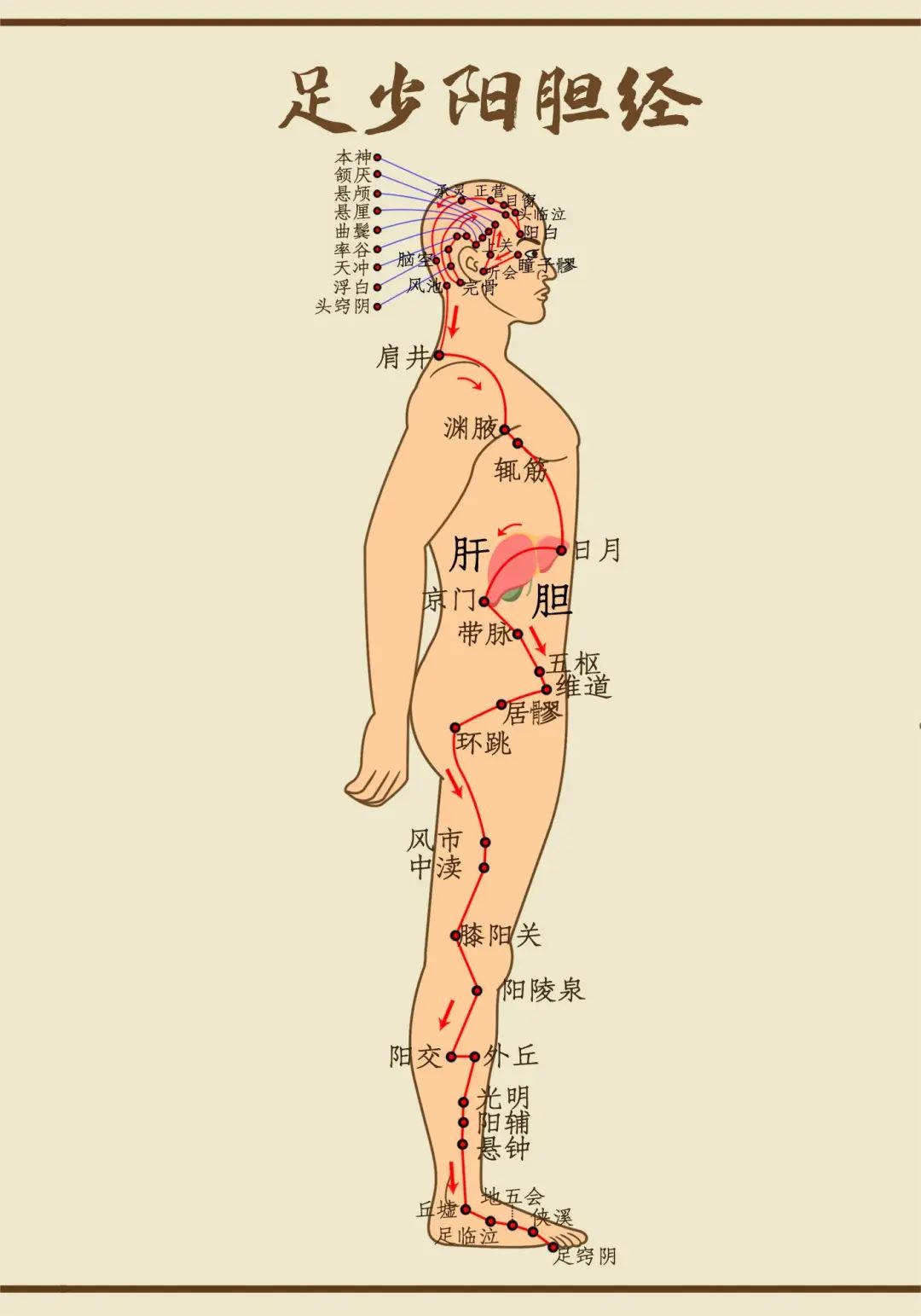 若疼痛发生在头两侧,即耳朵上部,就在胆经按摩,例如胆经的风池穴、阳陵泉穴等均可。