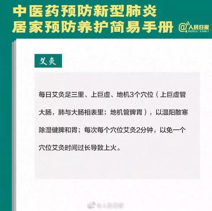 如今,包括湖北、河南、云南、山东、甘肃、海南等,全国多地陆续官方宣布将“艾灸”纳入防疫方案,推荐用艾灸提高免疫力,来应对疫情蔓延。日前,人民日报官方微博转发了权威专家湖北中医药大学校长吕文亮教授编制发布的《中医药预防新型肺炎居家预防养护简易手册》,其中,艾灸、艾草泡脚等被推荐用于新冠肺炎日常的预防,艾灸在提高人体免疫力上的作用得到肯定。
