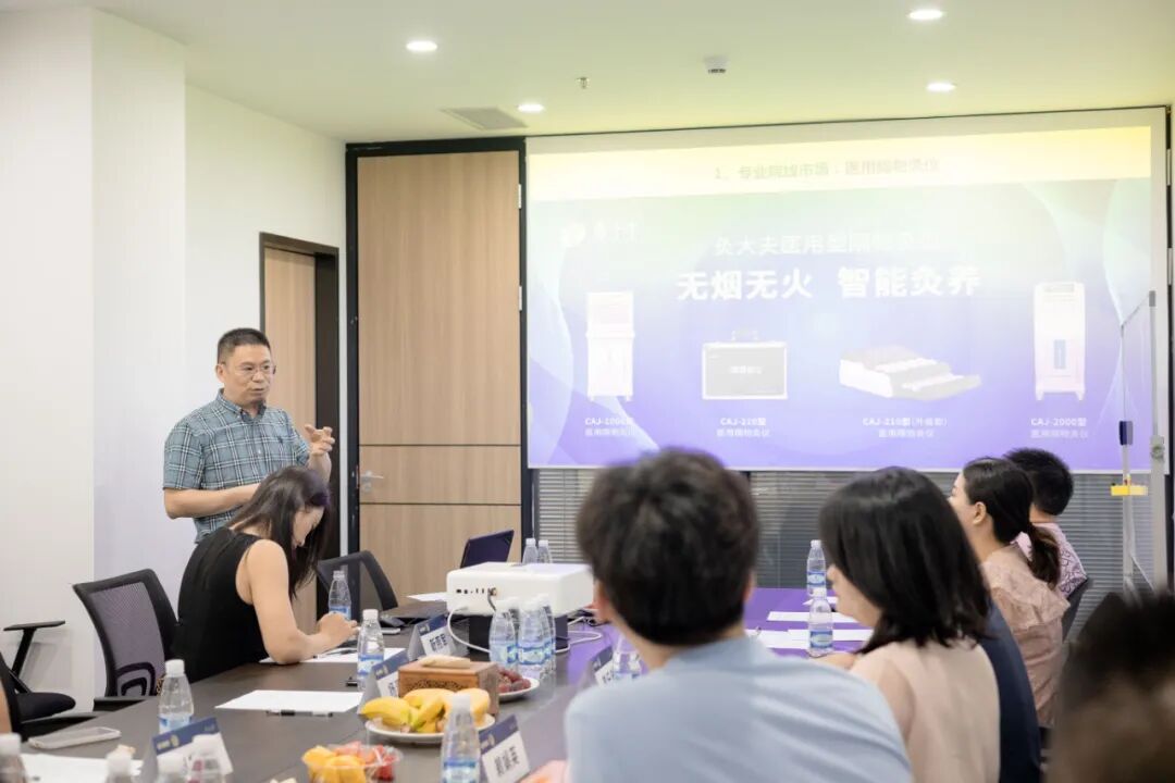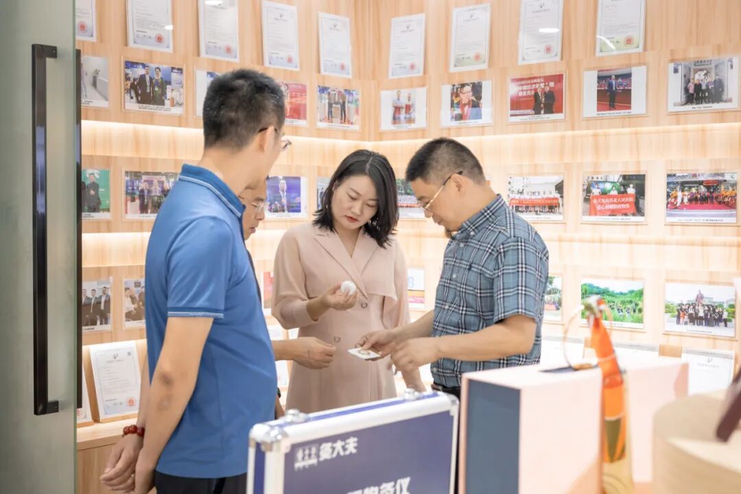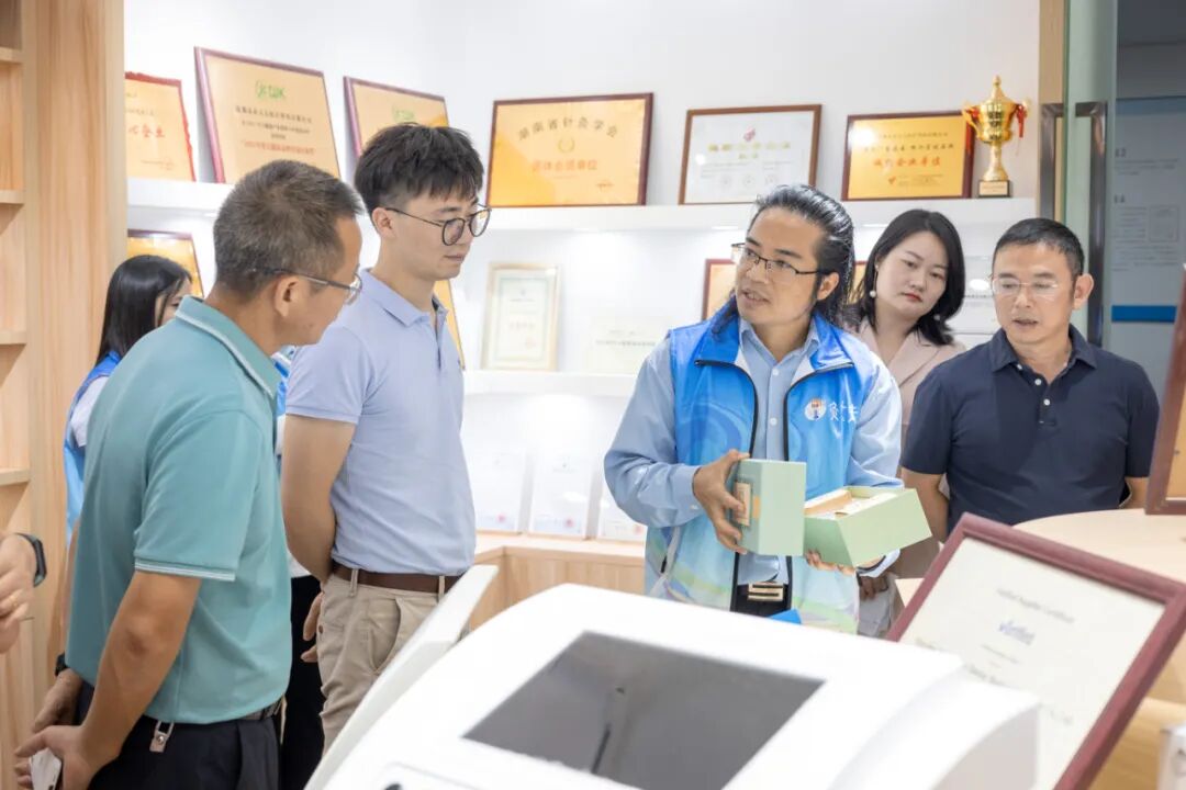 灸大夫董事长杨建功先生携企业骨干成员,对博商曾院长等一行成员进行了热情接待,亲自带领大家参观公司办公环境,感受灸大夫品牌风采。