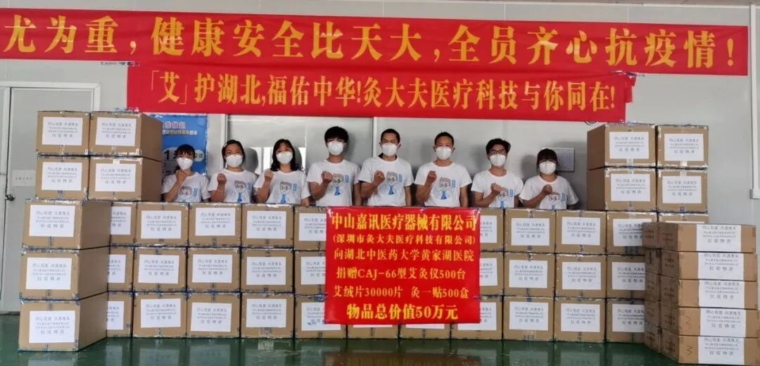 为保障抗疫援助物资的供应,在做好充分防控措施的前提下,灸大夫快速行动,组织旗下中山嘉讯工厂复工复产。以“疫情就是命令,防控就是责任”的态度,加班加点完成任务,以最快速度援助湖北抗疫。
